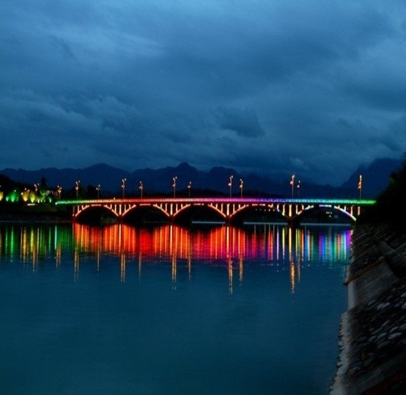 作为此次新北川县城亮化的纵轴—— 禹王桥、西羌南桥、北桥和安昌桥和永昌桥则展现出更具层次感的灯光效果