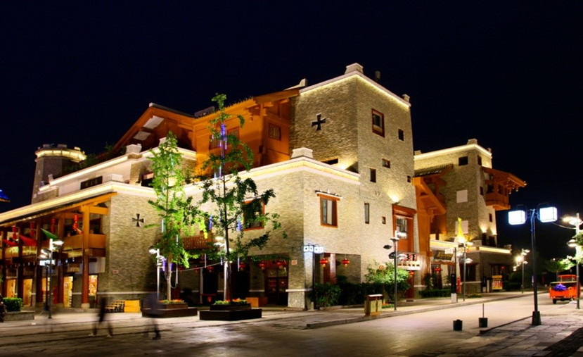 羌博馆、文化馆、图书馆、影剧院和民生大楼等区域通过投光灯、广角小射灯、中型射灯、地埋灯等实现泛光效果,整体给人耳目一新之感。