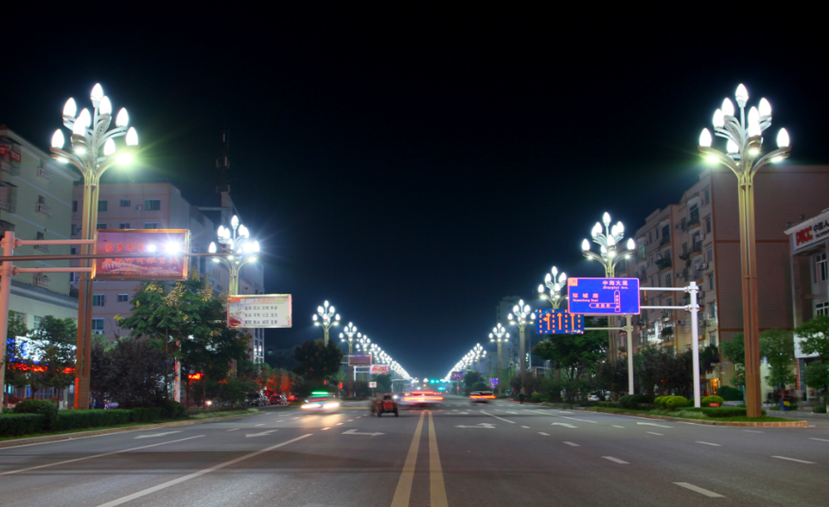 蓬莱大桥和蓬莱路,作为连接老城区和新区的主干道,安装了50套四叉五火玉兰灯。