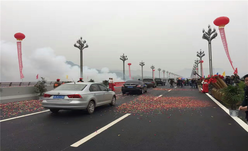 简洁、灵秀、俊美的玉兰灯稳稳地屹立于黄滩坝大桥上,就像庄严的卫兵见证着这一历史性时刻。