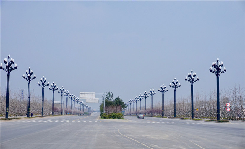 为进一步配合秦汉新城的战略发展规划及目标, 2017年2月,华体照明为秦汉新城的秦汉大道设计并安装15.08米八叉九火玉兰灯。