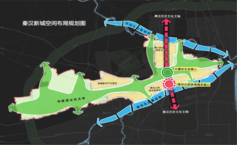 2014年1月6日,国务院批复西咸新区为国家级新区,秦汉新城全心致力朝着打造“民生之都,文化之城、田园之城、健康之城”奋斗目标前进。秦汉新城位于西咸新区的几何中心,是西咸新区五大功能组团的核心区域,西接咸阳主城区,南跨渭河与西安相连,区位价值明显,西周诸王陵、咸阳城遗址群、九座西汉帝陵分布其中,文化资源十分丰富,将打造成为国际一流旅游目的地。秦汉新城以前瞻的规划理念,科学契合本地实际,着力打造“一轴、双核、三带、三区”战略格局。秦汉历史文化主轴,依托秦汉大道这一交通骨干道路,将秦王宫与汉长安城连接起来,是秦汉新城连接历史、通达未来的命脉。