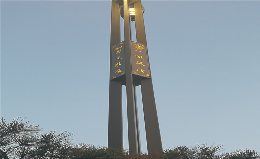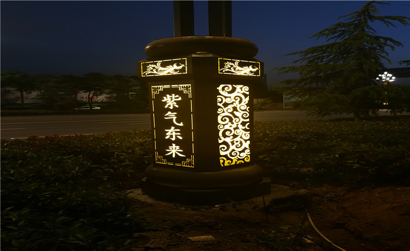 渭南是中华民族和华夏文明的发源地,因此,在此次设计中,在灯杆中部灯箱和底座设计上,均融入了祥云和凤凰元素,并雕刻有“一帆风顺、紫气东来”的字样,整体造型简洁大气,富有层次感。