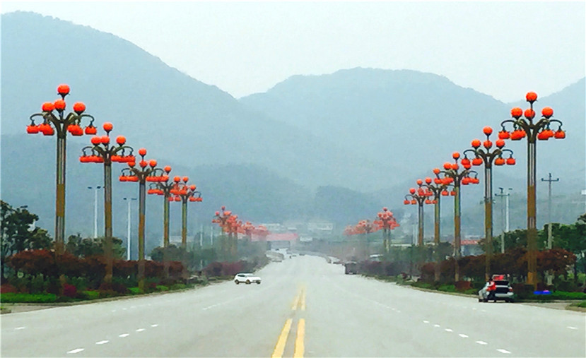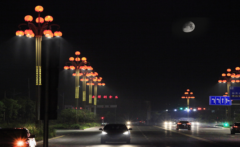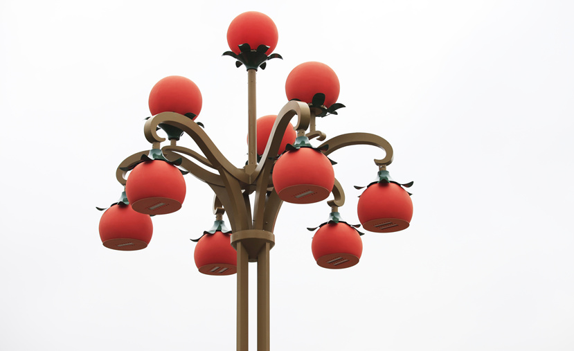 柑橘景观路灯“硕果累累”别致秀美,一方面,在保证功能照明的前提下,提炼柑橘的形态作为灯具的主体设计元素,诠释了石门独特的地域特色。日间灯具以景观雕塑的形态呈现,给人以美的享受。夜晚灯光闪烁渲染,更添了一份别样的美感,进一步增强了道路照明的景观性、趣味性和文化性,大大地提升了城市形象,使城市面貌焕然一新。另一方面,硕果累累的“果实”也寄托着石门县人民对丰收的期盼和对美好生活的向往。
