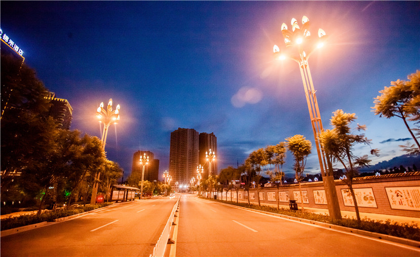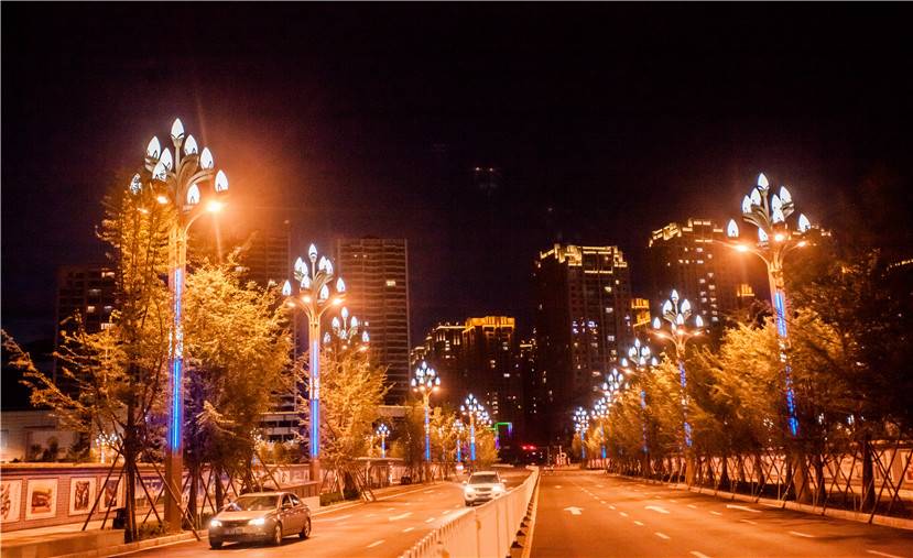 为了进一步提升安宁市城市面貌,华体照明参与安宁市道路改造和道路灯光提升工程,在2017年4月—5月,设计安装了“八叉九火玉兰灯”,对安宁市高速东收费站——连然街的路灯更新换代。