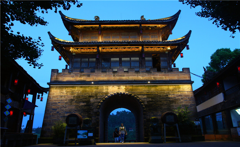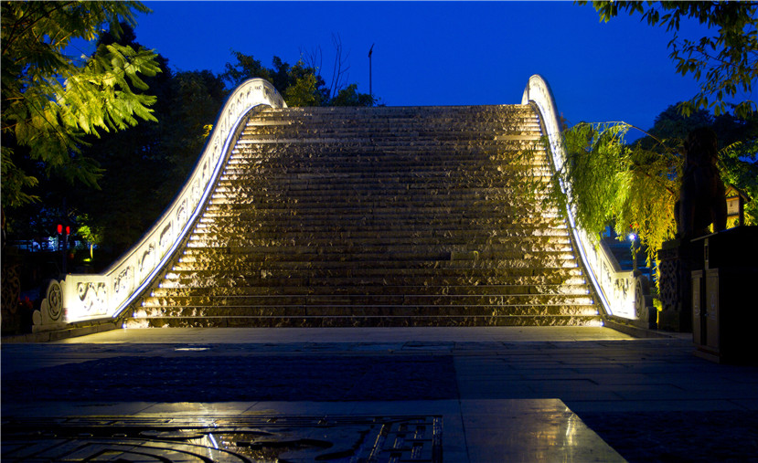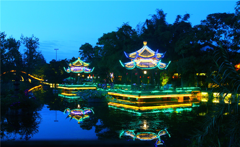 亮化提升后的龙潭广场,是进入黄龙溪古镇的门户。