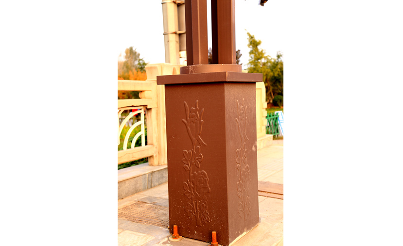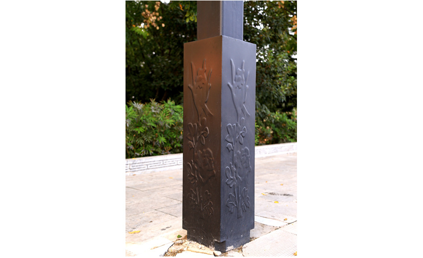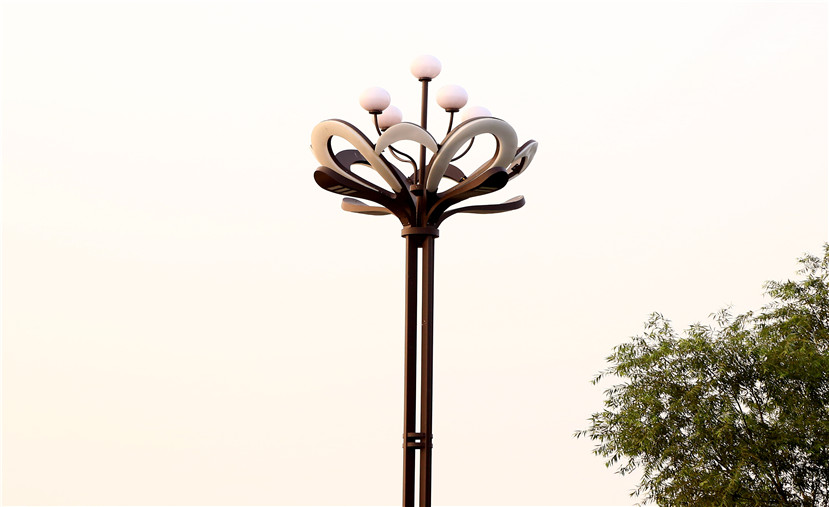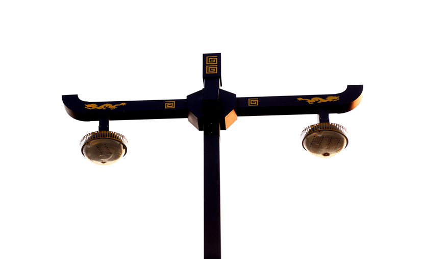 龙是中华文化里的主要图腾、主要象征, 封建时代,龙是皇权的象征,皇宫使用器物也以龙为装饰。设计者以龙为设计元素,灯型主体雕刻有两头欲破苍穹的龙,营造了一个创新、包容、独立、奋发向上的精神。灯杆底部的灯箱上刻有牡丹图案形象生动地展示了龙门石窟的景区风貌,龙灯灯杆装饰七彩节日氛围灯,使龙灯成为一道亮丽的风景线,营造出喜庆、热闹、祥和的景区氛围。