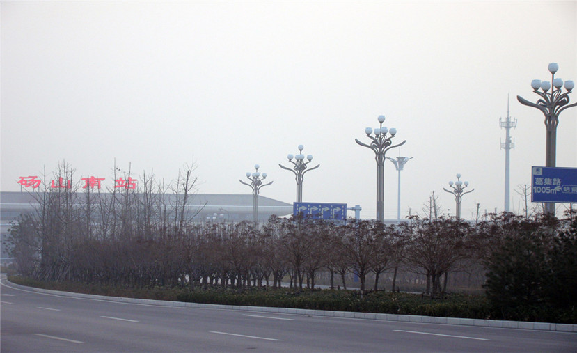 梨都大道上的“繁花似锦”和砀山南站隔街相望