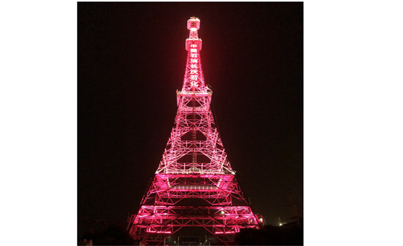 长庆石化厂区大门上方正好是长庆石化的通讯塔,该通讯塔承担着重要的通讯传输任务,但该通讯塔功能单一,没有任何装饰性的东西,特别是在夜间更显不出其重要作用。
