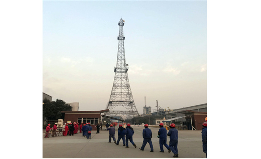 长庆石化通讯塔“穿上”七彩新衣迎新年