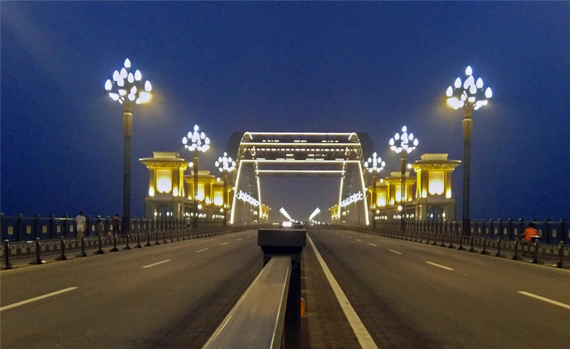 李城大桥本身在结构设计上就有很好的景观桥的特点,华体照明经典玉兰灯安装在桥上,白天玉兰灯与形态优美的大桥很好地融合在一起,起到了很好的装饰作用,夜晚与大桥桥身的亮化灯具结合在一起,成为夜晚大桥上一道靓丽的景观。