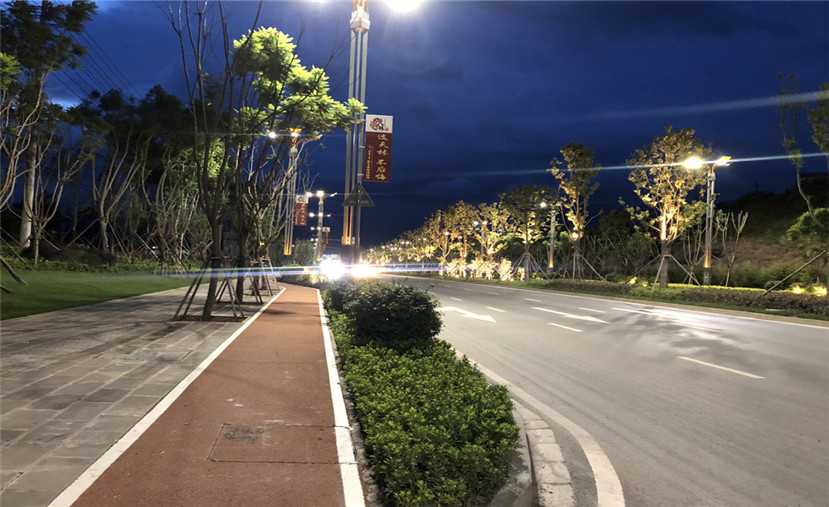 四川华体照明科技股份有限公司(股票简称:亿万28网页版官方-亿万28入口网页版-亿万28网页版网址-亿万28网页在线玩-28游戏官网在线玩-亿万e网址pg-亿万28模拟器-亿万28娱乐-亿万28线上网 股票代码:603679)有幸参与到该项目的路灯建设中,为业主方量身定制创意系列“流光溢彩”路灯近500套。“流光溢彩”灯型设计以简洁流畅的线条为设计元素,结合现代简洁的设计手法,提取流畅的线条,灯臂如展翅翱翔的翅膀,寓意城市蓬勃发展、日甚一日。