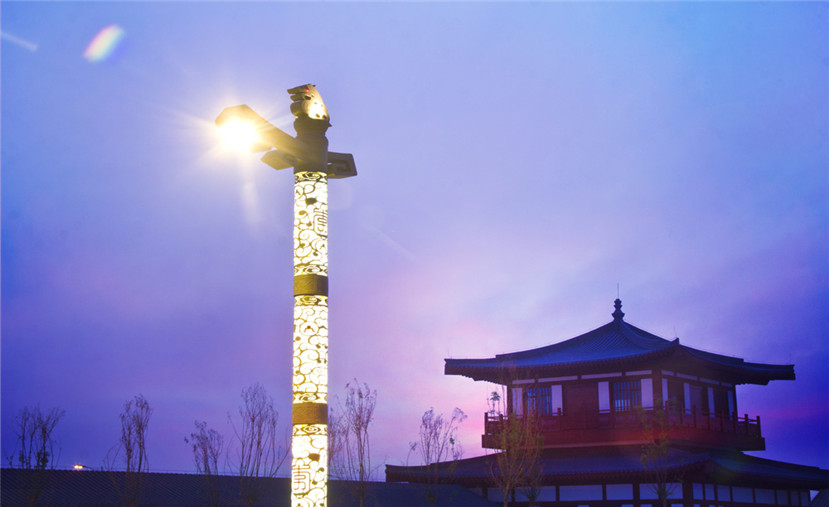 华体照明根据隆尧唐祖陵的华表这种古代建筑形式,为隆尧李氏文化园内量身定制“望柱”景观路灯。