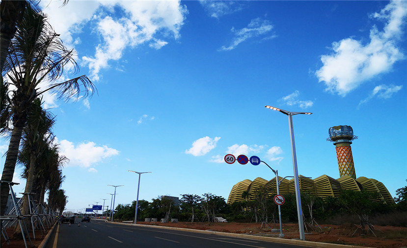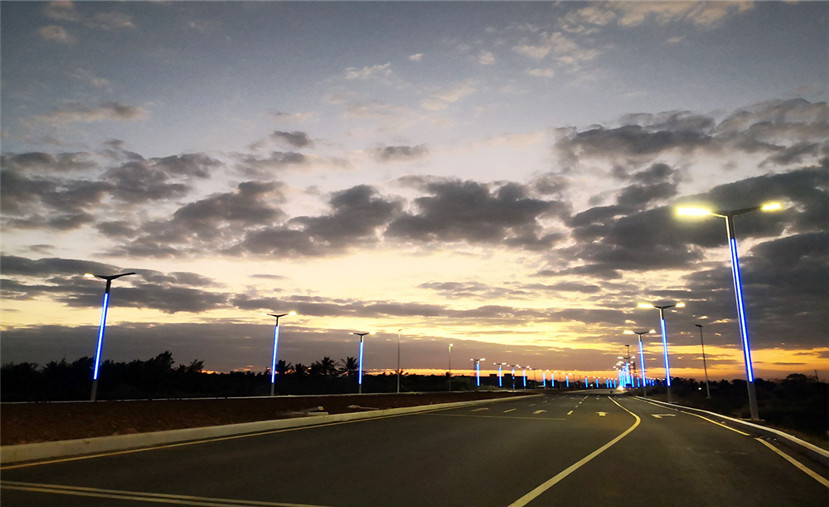 在江东大道的建设中,承担夜间照明功能的路灯也是重要的一环,作为海口市高起点高定位的江东新区,在江东大道的道路照明建设方面,也是重点突出“海南特色、高点定位”。