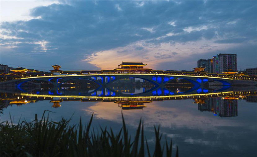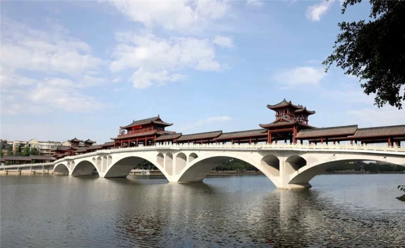 它不仅具备连通南河两岸、方便市民通行的实用功能,其中植入的大量历史文化元素,更让它成为展示新津历史文化的窗口,这也让五津廊桥成为新津的文化地标。