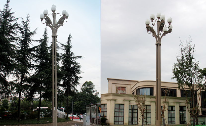 芙蓉中华灯,将成都市市花——芙蓉文化元素,运用在多头、植物造型灯杆的中华灯上。突破了传统中华灯造型与照明功能,不能兼顾的缺陷,实现了功能照明和景观照明完美结合,整灯呈现大气、稳重之感。波罩内为我公司专属配置的芙蓉灯波罩光源,绿色照明,节能环保。华灯初上,璀璨夺目的芙蓉中华灯与来往的车辆交相辉映,使成都市迎宾大道的“美丽指数”直线上升。