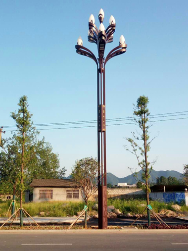 八叉九火玉兰灯,即“花灯”,指的是多头,植物造型的灯杆。该灯选取玉兰花瓣的设计元素,实现了灯杆与灯头的实体连接,整灯呈现通透灵秀之感。灯头有9个装饰光源3层分布,似是9朵玉兰花环绕形成一朵大玉兰。此次照明光源全部采用第三代LED模组,充分实现绿色、节能、环保的目的。