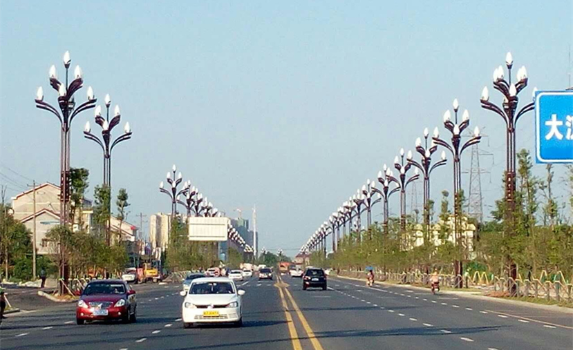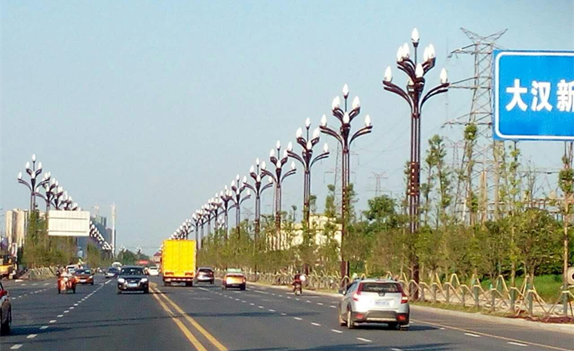 夹山大道,是石门县县城主干道之一。 为改善夹山大道目前照明效果不佳的现状, 2016年1月,石门县城区道路提质改造项目(夹山大道)全面启动,四川华体照明科技股份有限公司根据夹山大道的道路情况以及当地的文化元素,设计并安装了“茶禅一味”八叉九火玉兰灯。