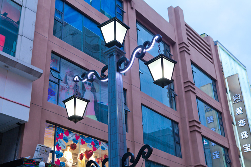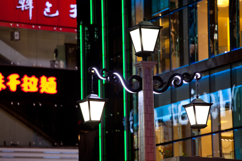 景观照明改造就是在春熙路的东南西北四条街上,安装了名为“民国风”的庭院景观灯,共50柱。该灯由四川华体照明科技股份有限公司设计并生产,整灯设计特点就是:中西文化结合,现代与传统结合,景观与功能相结合。