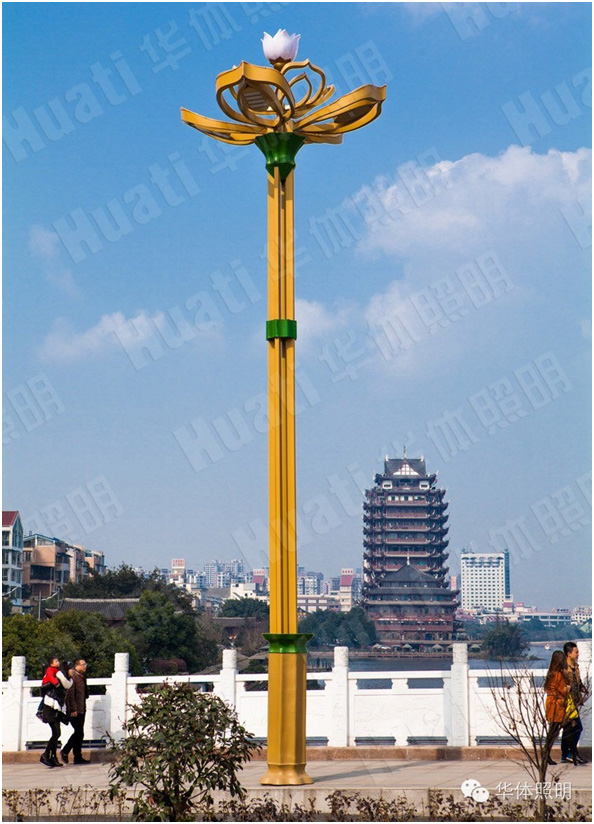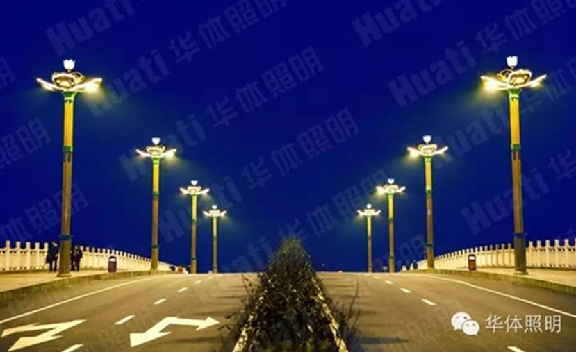 四川眉山市老泉桥,是连通眉山城区与东坡岛的重要交通枢纽,也是东坡湖上一道亮丽的风景线。2014年12月,华体照明为老泉桥增添—“金荷罗裙”景观照明路灯。