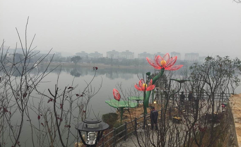 在峨秀湖旁,“莲花”灯光小品沐浴在晨曦和黄昏中,远远望去如栩栩如生的莲花,形成一抹风景水彩画,点缀着峨秀湖的旖旎风光。