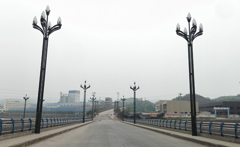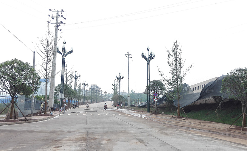 该园区采用的四叉五火玉兰灯,杆体成墨绿色,功能光源与装饰光源均采用绿色节能LED,与宜宾市绿色城市相符合。道路主干道两侧屹立的高标准建设玉兰灯,不仅给工业园区带来光明,而且使得园区建设宏伟大气,形成投资环境优势,为园区招商引资打下坚实的基础,以形成集聚效益和品牌效益,提高园区知名度和市场竞争力。