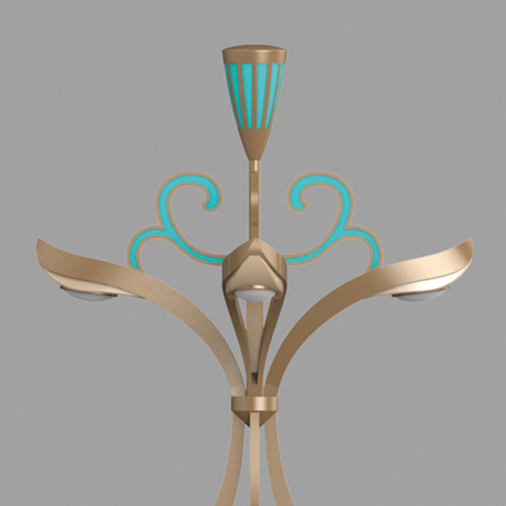 灯型以莲花为创作元素,经过设计者的提炼,将莲花与花瓶的形态相结合;