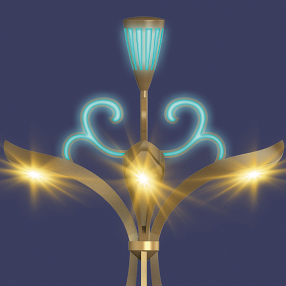 杆体的独特造型更使得整个灯具呈现亭亭玉立之感;