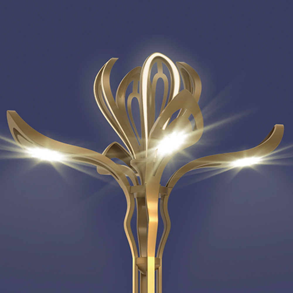 改变了以往单一的花灯结构,而是将花瓣根据不同的需求予以相应组合,在花瓣中镶嵌灯带,使整灯在夜晚中也能给城市增添光彩;