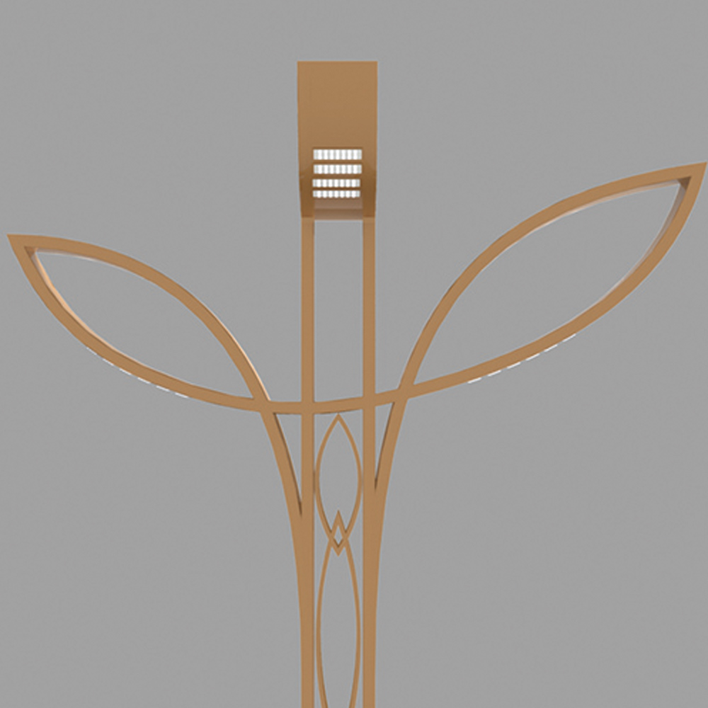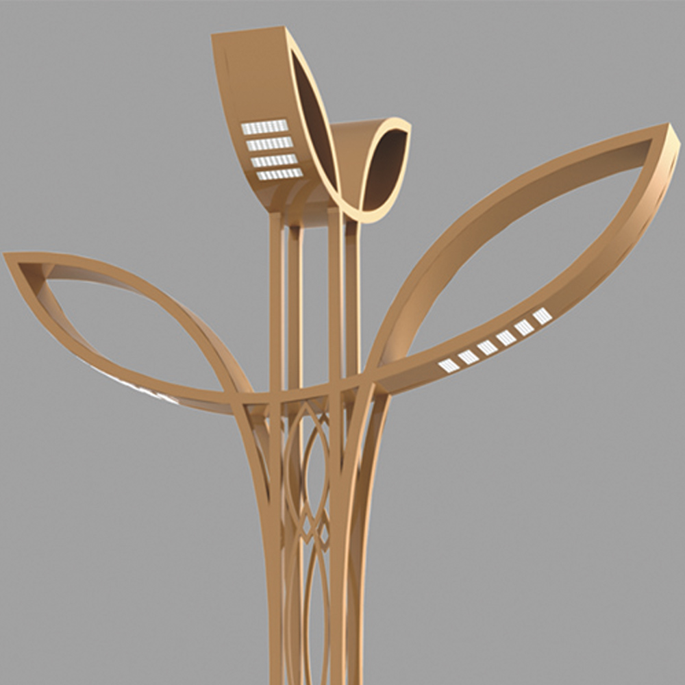灯型主体、杆体、底座材质为金属钢件表面热度喷塑,灯具为铝件,可配光源LED/钠灯。