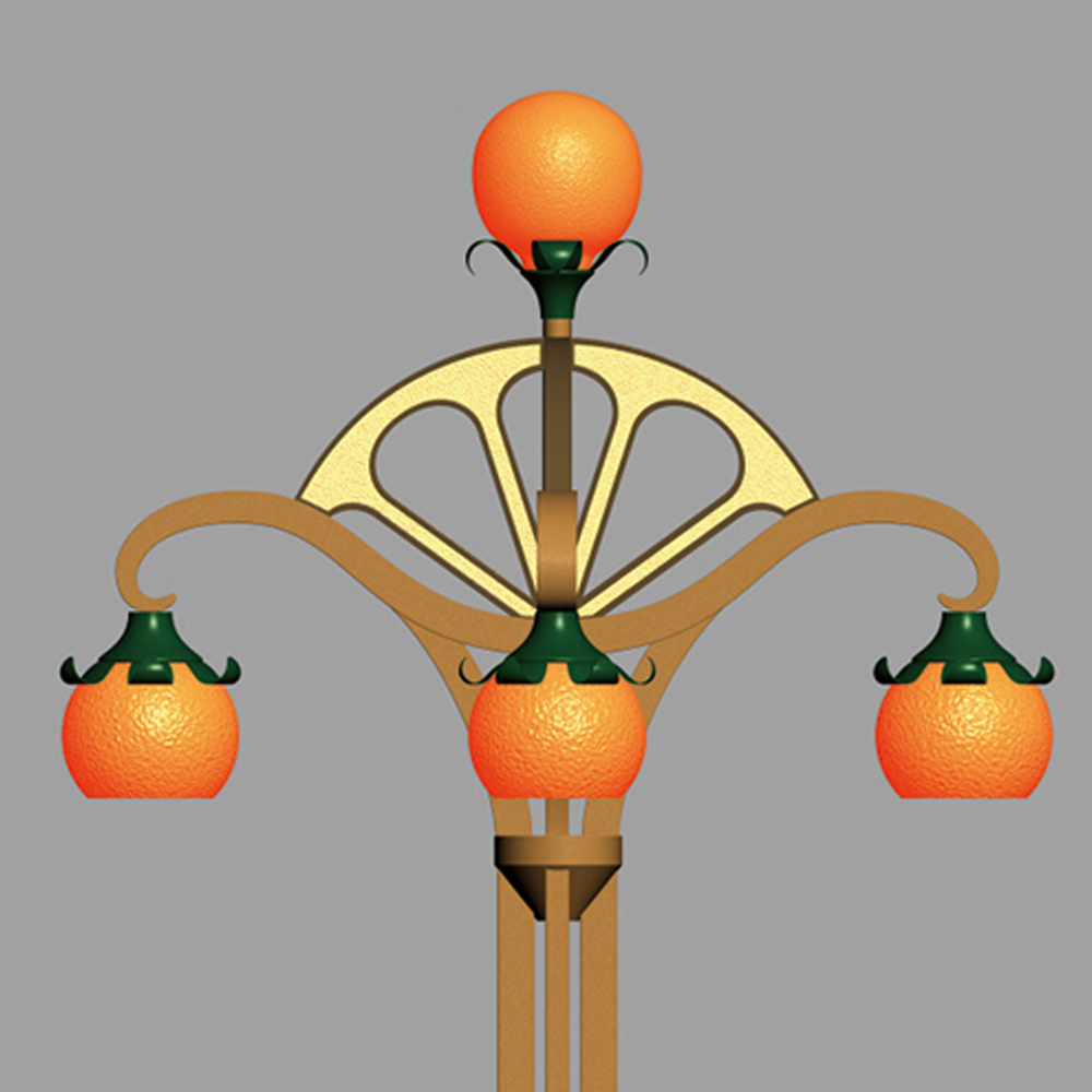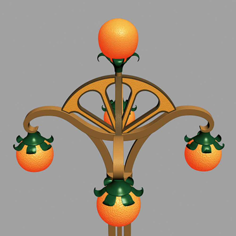 灯型设计元素主要来源于柑橘等经济作物独特外型,具象的设计灵感,使得灯型更具地方代表性;
