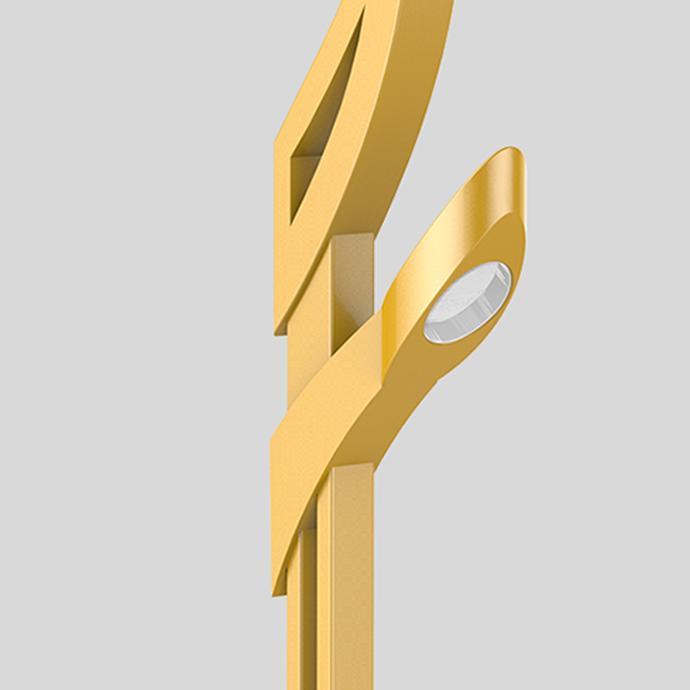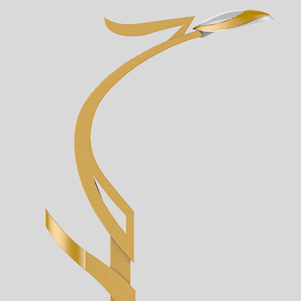 灯臂的设计以飞翔的凤凰姿态为元素,将凤凰的尾部特征高度提炼作为灯具的主体造型。