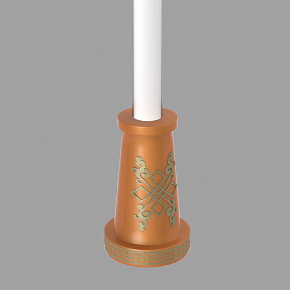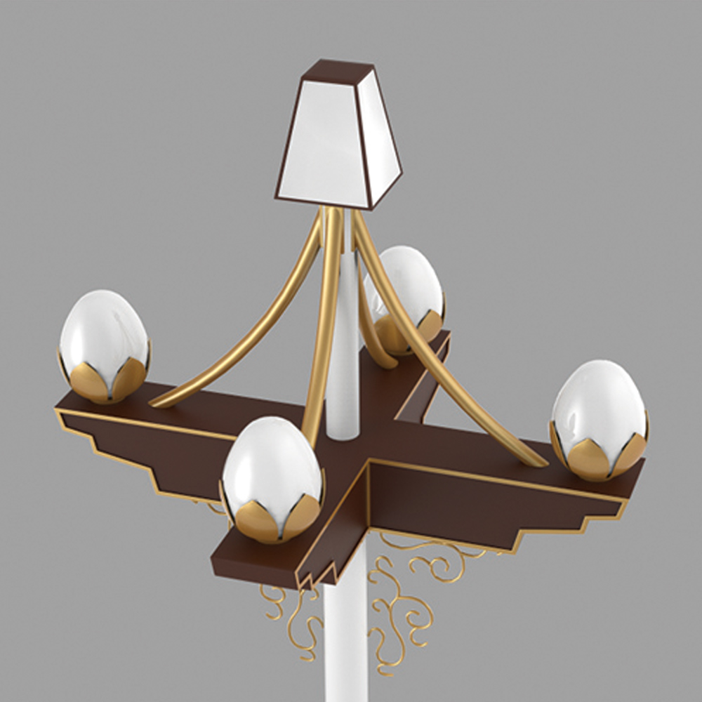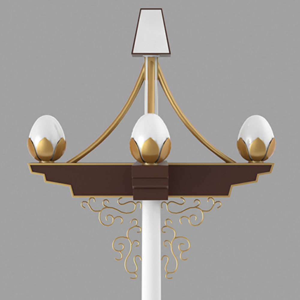 灯罩形似金莲象征西藏的佛教文化,灯臂象征庙宇,结构整体充满了西藏独有的风格,造型突出、结构鲜明、简洁美观。