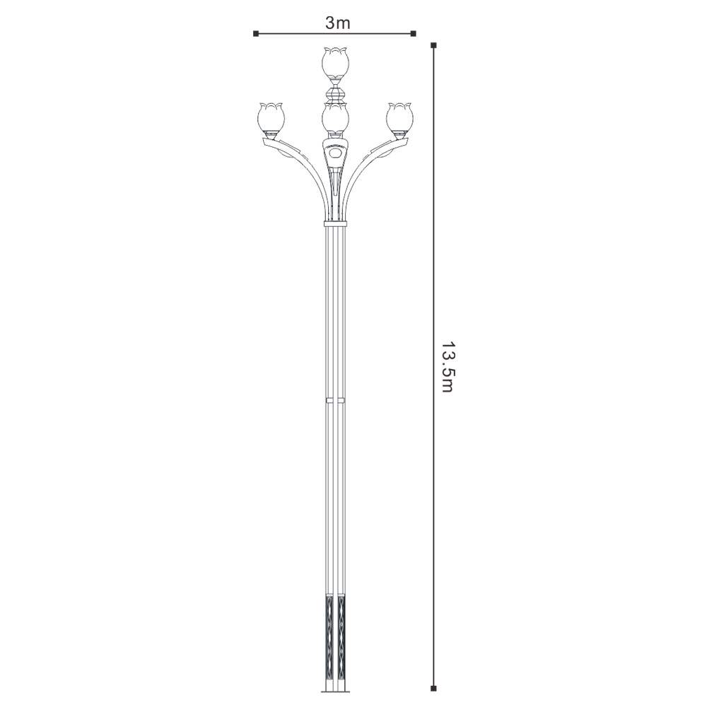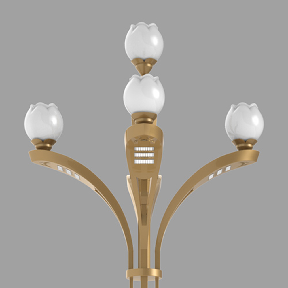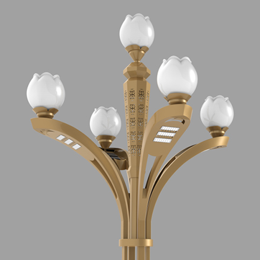 中华灯是一款极具中国特色,外观大方的多等头灯具。芙蓉中华灯是在传统中华灯的基础上进行了改良,保留其神韵,切加入新的元素,巧妙的运用花瓣的形式,实现了灯杆与灯头的实体连接;