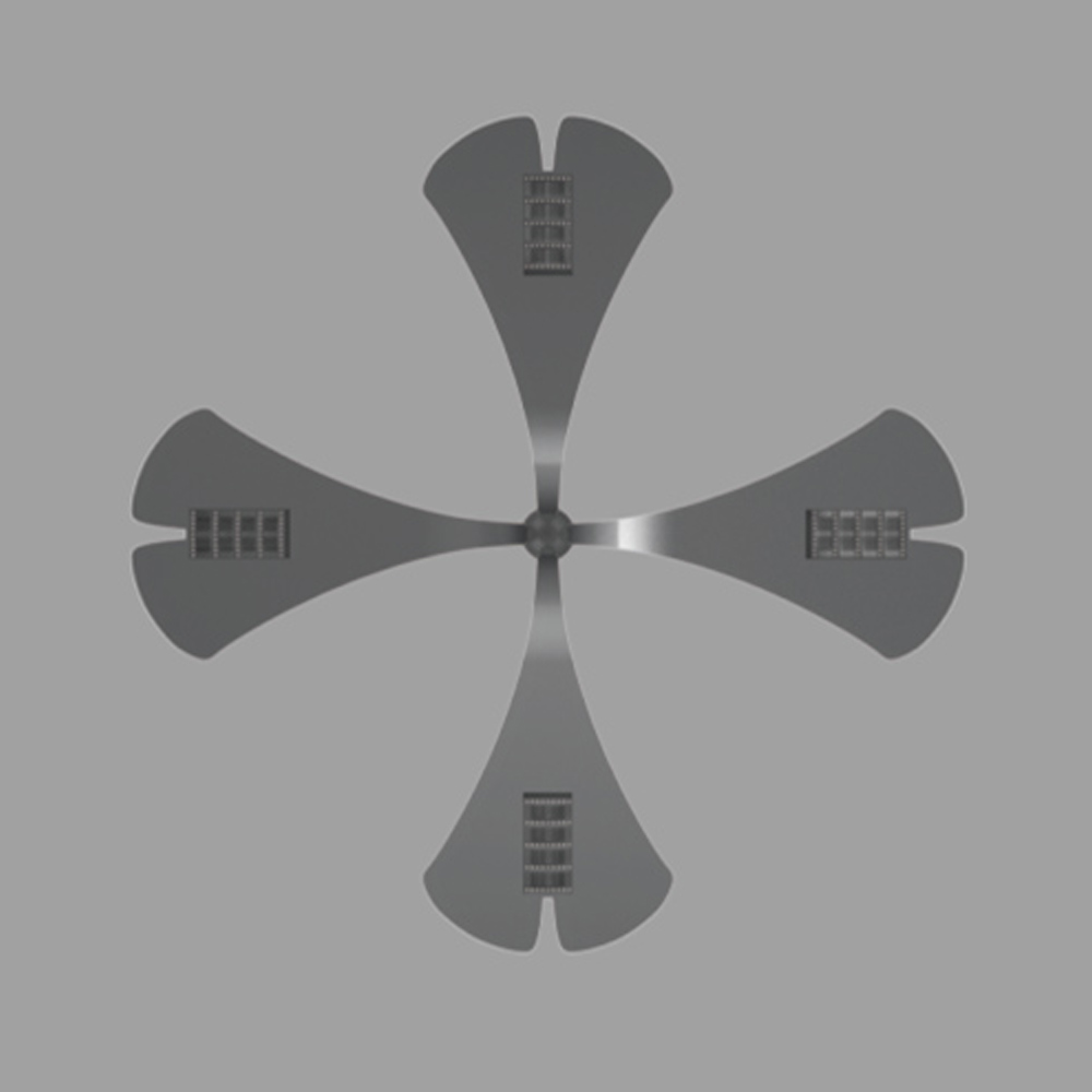 该灯将银杏枝叶的形态作为元素,进行设计开发的一款新型多头道路灯;
