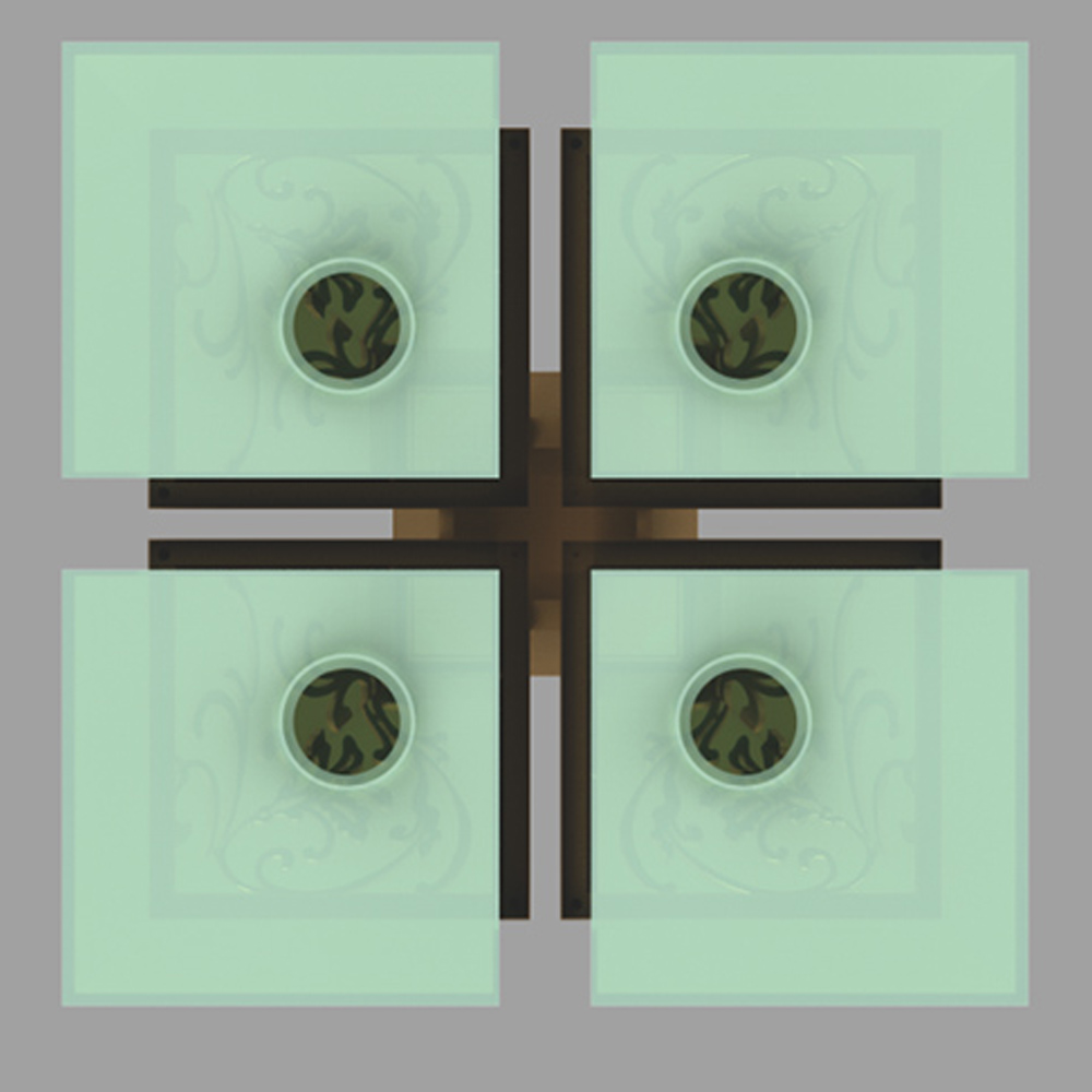 玻璃做成的抽象粮斗造型,搭配传统铁花,形成可装载其他异域文化元素的镂空花纹,如鱼网、脸谱、花草。西昌城市安装了鱼网的镂空花纹,蕴含了此地独特的渔家文化。成都的脸谱镂空花纹造型,宣传了博大精深的川剧文化;