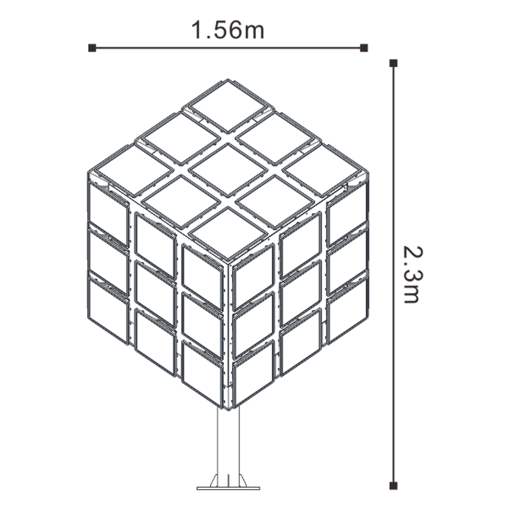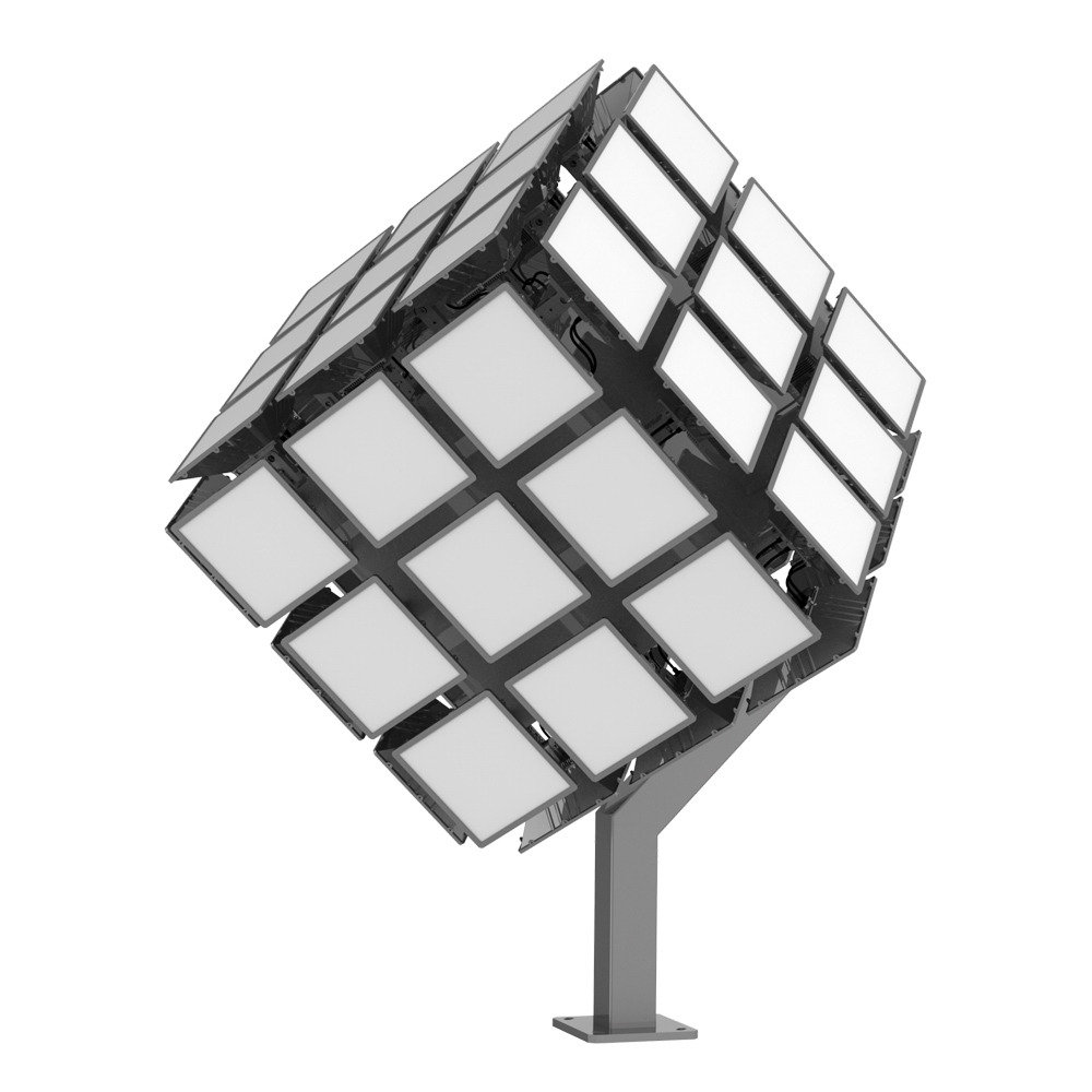 灯型主体采用智慧游戏“魔方”的造型,配以LED光源,体现新科技智慧;
