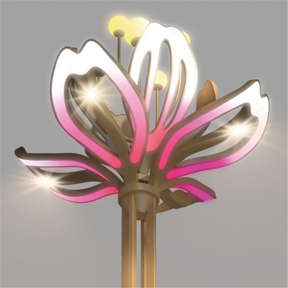 设计以五彩缤纷的花朵,衬托城市的华丽。提升城市品位,营造绚丽多姿的夜间景观照明。