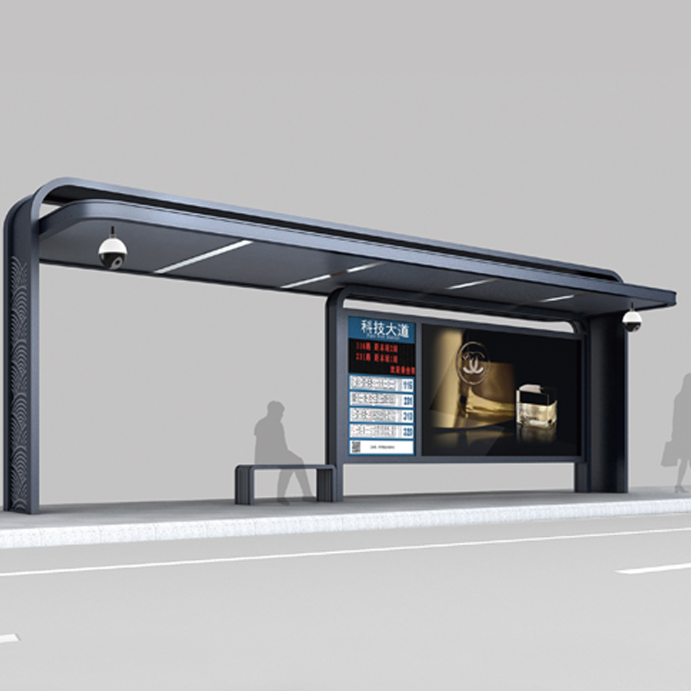 公交车站顶部配有LED节能灯, 结构美观, 不容易受损, 寿命时间长, 节能环保 。